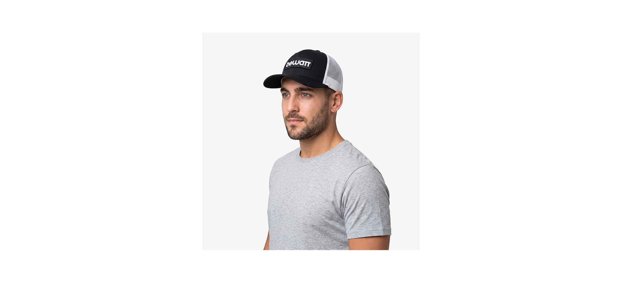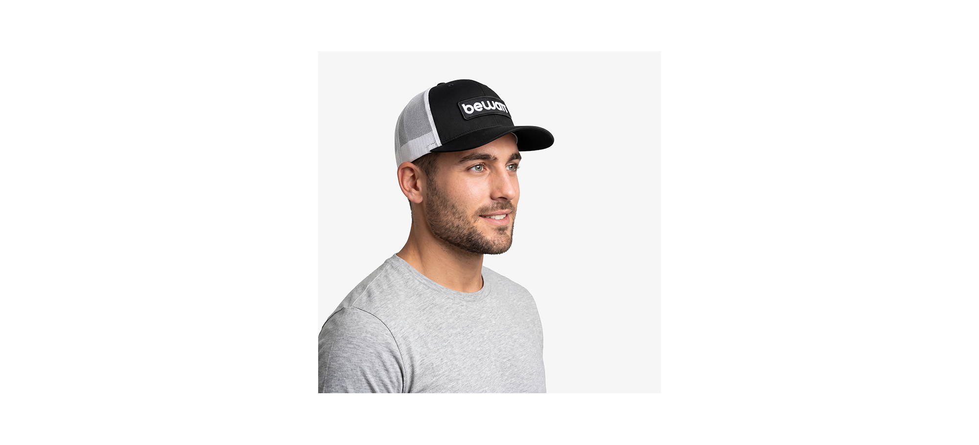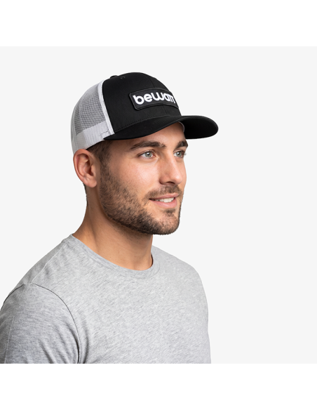BEWATT Black and White Retro Trucker Cap, with six retro trucker fit panels, premium fabric made with 40% cotton, 25% polyester and 28% nylon. It has a pre-curved visor and adjustable plastic closure.