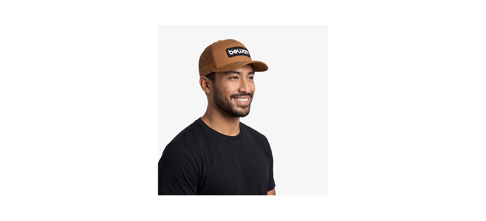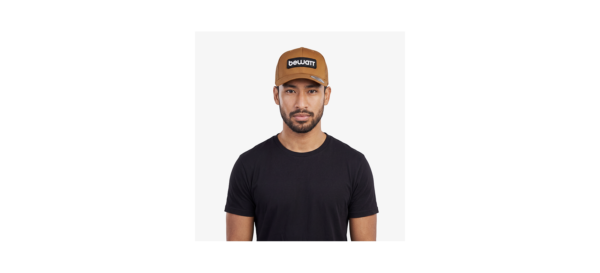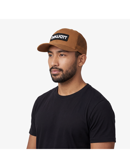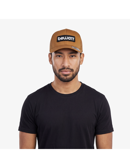 BEWATT Brown Retro Trucker Cap, with six retro trucker fit panels, premium fabric made with 40% cotton, 25% polyester and 28% nylon. It has a pre-curved visor and adjustable plastic closure.